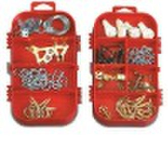 Same box with different contents. Box size: 10.5x18x4.2cm We list5 items style ofAssortment Kitsfor your selection. 1: Item No. DescriptionZY7201252PC HARDWARE ASSORTMENTContents: 252PC HARDWARE ASSORTMENT LOCK WASHER:4mm--30PC 5mm--28PC 6mm--24PC NUT:M4--35PC M5--32PC M6--24PC MACHINE SCREW: 6×19--12PC 6×25--10PC 5×25--12PC 5×30--10PC 4×12--15PC 4×25--20PC 2: Item No. DescriptionZY7200117PC HOOK ASSORTMENTContents: 117PC HOOK ASSORTMENT CUP HOOK (B/P):5/8"—8PC 1"—6PC 1-1/4"—6PC HARDWALL HANGER(ABS):3PIN—4PC IRON WIRE:6FT—1PC SEMI-ROUND NAIL:1/2"—10PC BRASS HEAD NAIL:1"—20PC ROUND HANGER: 10LB—6PC 20LB—4PC 45LB—1PC 75LB—1PC SAW TOOTH:1-1/2"—4PC EYE SCREW:3#—12PC 5#—6PC SQUARE SCREW EYE:20PC FRAME HANGER:8PC 3: Item No. DescriptionZY7202107PC HOOK ASSORTMENTContents: 107PC HOOK ASSORTMENT CUP HOOK (B/P): 1/2"--15PC 7/8"--6PC 1-1/4"--5PC 1-1/2"--4PC SQUARE HOOK(B/P):5/8"--12PC 1"--8PC 1-1/4"--8PC SCREW EYE(Z/P): 1#--20PC 3#--10PC SCREW HOOK (Z/P):1-7/16"--10PC 1-5/8"--6PC 2-9/16"--3PC 4: Item No. DescriptionZY7203132PC CHIPBOARD SCREW &ANCHOR SETContents: 132PC CHIPBOARD SCREW &ANCHOR SET ANCHOR:5#—16PC 6#—20PC7#—10PC 8#—8PC CHIPBOARD SCREW: 3.5×30—30PC 4×30—10PC 4×40—20PC 5×50—10PC5×60—8PC 5: Item No. DescriptionZY7204200PC HARDWARE ASSORTMENT Contents: 200PC HARDWARE ASSORTMENT CUP HOOK(PVC): 1PIN—4PC SEMI-ROUND NAIL: 1"—10PC PAPER CLIP: 28MM—40PC PICTURE HOOK: 20LB—6PC PUSH PIN:10PC THUMB TACK:50PC EYE SCREW: 3#—12PC ANCHOR:5#—10PC 6#—12PC 7#—8PC WOOD SCREW: 3.5×25—10PC 4×25—10PC 4×30—10PC 5×38—8PC We can also produce according to your requirement,and our products are mainly sold in Department store.